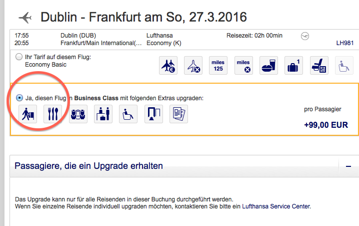 Lufthansa Business Class Upgrade | wie buchen?