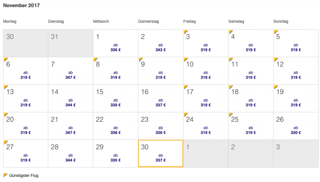 Über die Lufthansa Bestpreissuche lassen sich sehr einfach verfügbare Daten für dieses Angebot ermitteln. Die Verfügbarkeit sehr gut.