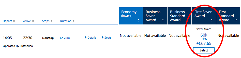 Die geringsten Steuern& Gebühren | Lufthansa First Class über United Airlines MileagePlus buchen