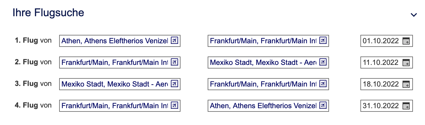 Übrigens gibt es auch zu weiteren Zielen in Mexiko wie Cancun ähnliche Tarife, allerdings muss man hier etwas mehr mit der Buchungsmaske spielen, weshalb es eher für Fortgeschrittene geeignet ist.