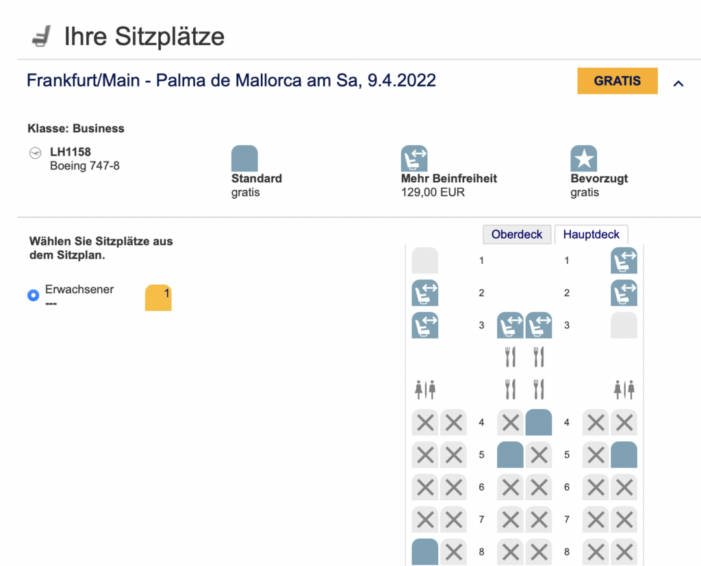 Besonders die ab Frankfurt eingesetzte Boeing 747-8 ist auch sehr spannend, denn sie verfügt über acht First Class Sitz, welche man mit einem Business Class Ticket nutzen kann. Hierbei will Lufthansa allerdings einen Aufpreis für die Sitzplatzreservierung in der First Class von 129 Euro. Der Service bleibt hier bei dem der Business Class und auch Zugang zum First Class Terminal hat man hierbei nicht.