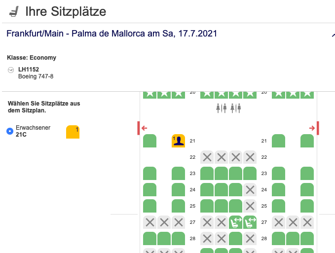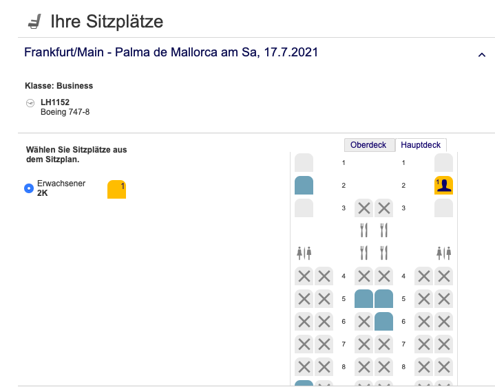 Interessanterweise können auch Passagiere ohne Status diese Sitze auswählen, wenn sie wissen, welche es sind. Normalerweise versucht Lufthansa die First Class Sessel und Premium Economy Class Sitze nur an Senatoren und HON Circle Member zu vergeben, allerdings kann man diesmal Glück haben und auch ohne Status in der First Class Platz nehmen.