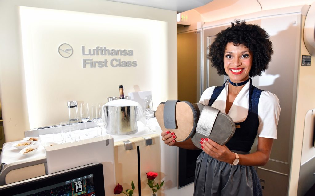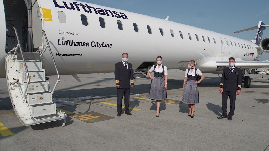Als Hommage an das weltberühmte Volksfest flog in der zurückliegenden Woche bereits ein Airbus A350 mit einer Kabinencrew in bayerischer Tracht nach New York (EWR). Auch FlugbegleiterInnen der CityLine präsentierten die Trachten auf zahlreichen Europaflügen. Von München starteten Maschinen der Regionaltochter nach Kopenhagen, Helsinki, Manchester, Berlin und Wien. Auch Urlaubsdestinationen wie Santorin und Sylt wurden samt Stewardessen im Dirndl-Outfit angeflogen.