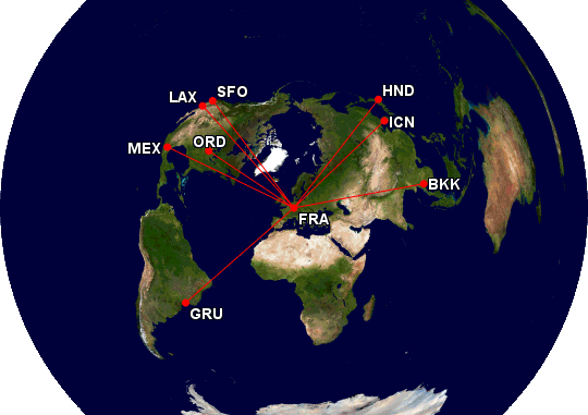 Seit drei Wochen sind die ersten Maschinen nun von Frankfurt nach Chicago und Los Angeles unterwegs, weitere Ziele folgen. Als nächstes kommt wie geplant Tokio (HND) hinzu, im Laufe des kommenden Monats will man auch Mexico City, Bangkok und Seoul auf den Zweistrahler umstellen.