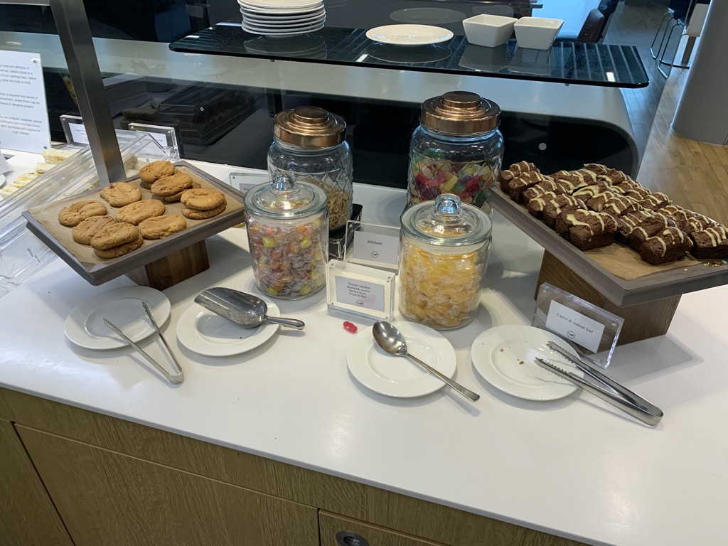 Was in Zeiten von Corona fast wie eine Sensation daherkommt ist die Tatsache, dass Lufthansa in der Lounge in London Heathrow wieder das volle Buffet anbietet. So gibt es wieder vier warme Gerichte, Salate, Sandwiches, Kuchen und einiges anderes.