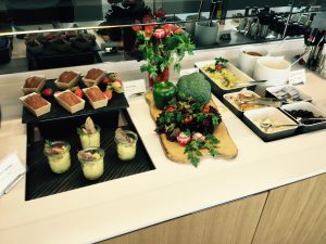 In den Lufthansa Business Lounges gibt es neben viele Sitzmöglichkeiten, kostenlosen WLAN und Steckdosen auch immer ein Buffet mit Speisen und Snacks, sowie eine breite Auswahl an alkoholischen und alkoholfreien Getränken. Hierbei ist alles was in der Lounge angeboten wird kostenlos.
