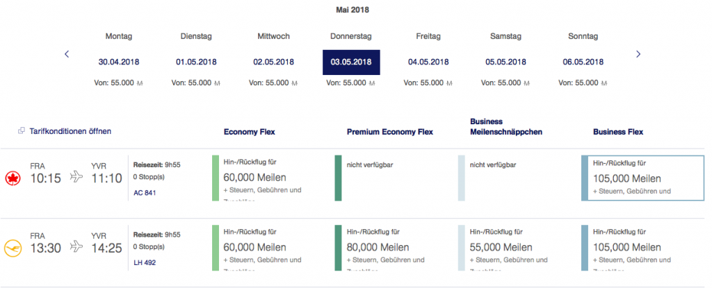 Im Dezember bietet Lufthansa bei den Meilenschnäppchen in der Business Class eine recht spannende Auswahl an Zielen an. Besonders Vancouver ist hier ein Highlight. Das absolute Highlight ist in meinen Augen bei den Lufthansa Meilenschnäppchen im Dezember 2017 allerdings, dass die Meilenschnäppchen zu fast allen Zielen extrem gut verfügbar sind.