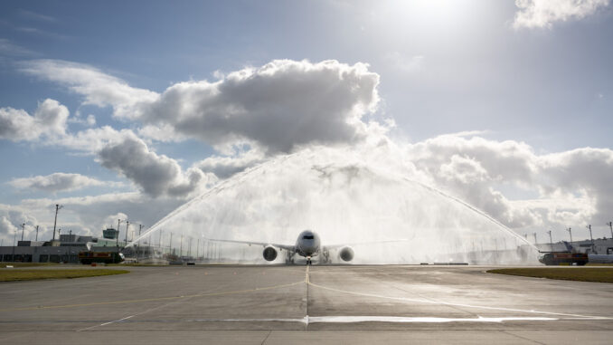 Auch in München haben zahlreiche Passagiere den ersten Tag nach dem Aufheben des Travel Bans genutzt. Das Gate des ersten Fluges am Montag wurde von drei Flaggen geschmückt – die bayerische, die deutsche sowie die amerikanische. Der Airbus wurde sogar mit Wasserfontänen (Titelbild) der Flughafenfeuerwehr verabschiedet und ging als LH460 nach Miami.