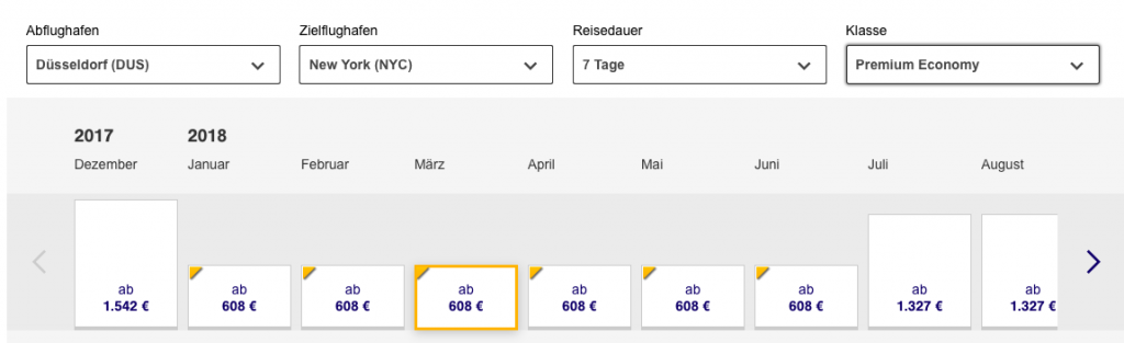 Über die Lufthansa Bestpreissuche lassen sich sehr einfach verfügbare Daten für diese Angebote ermitteln. Die Verfügbarkeit sehr gut.