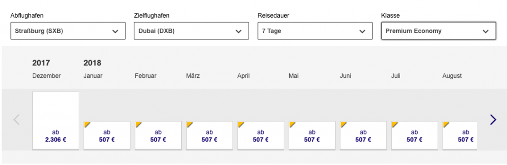 Das günstigste Ziel ist Dubai mit 500 Euro für den Hin- und Rückflug. Aber auch ganz Fernost Asien lässt sich ab 750 Euro erreichen. Für die komfortabele Lufthansa Premium Economy Class ist dies sicherlich ein super Angebot!