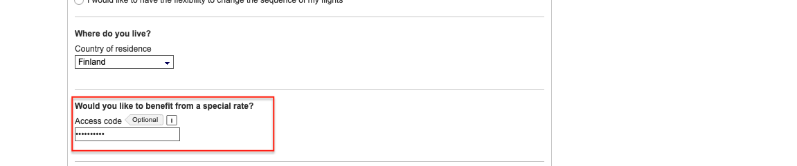 Als erstes muss man zwingend über die Angebotsseite der Partnerangebote ab Finnland auf die Lufthansa Webseite einsteigen und hier versuchen einen beliebigen Flug zu buchen.