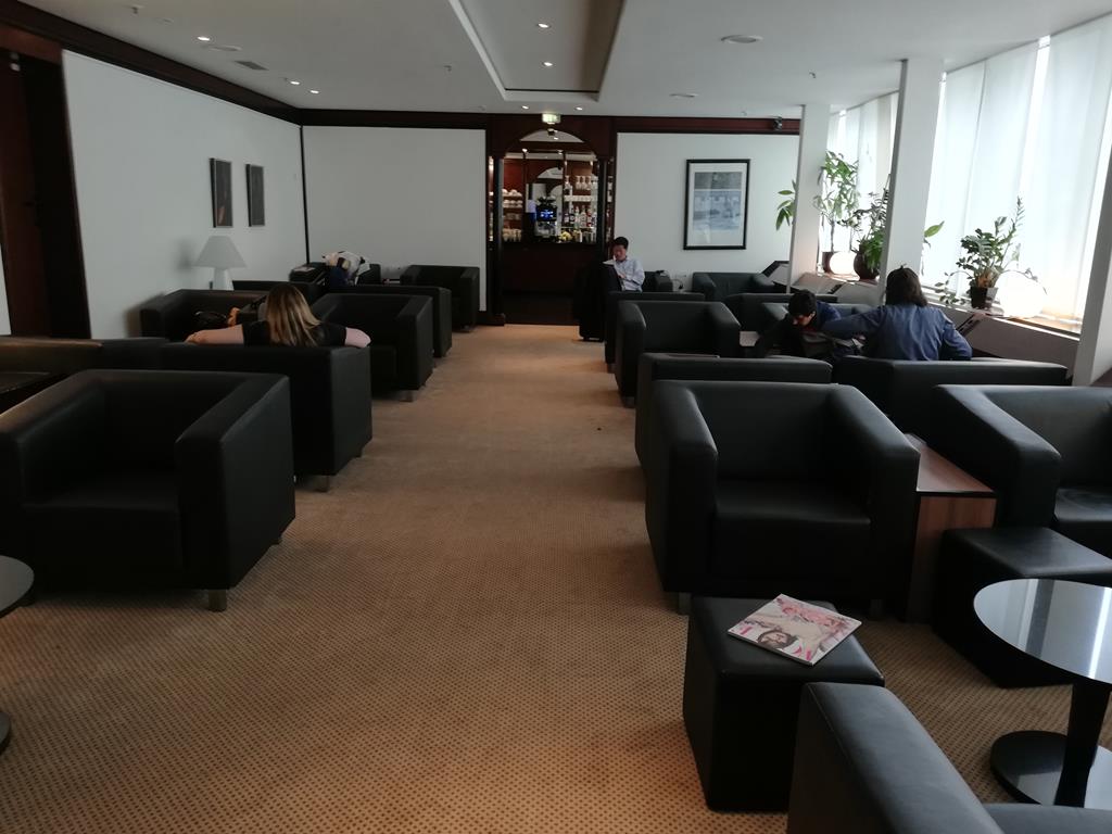 Wer die Lounge betritt, muss zunächst am Schalter sein Ticket, Priority Pass oder entsprechende Zugangsberechtigung vorzeigen. Während meines Besuches war nur die (vom Eingang aus gesehene) rechte, größere Seite der Lounge geöffnet, da auf der linken Seite ein Event stattfand. Allerdings unterscheiden sich die Bereiche nicht zu sehr.