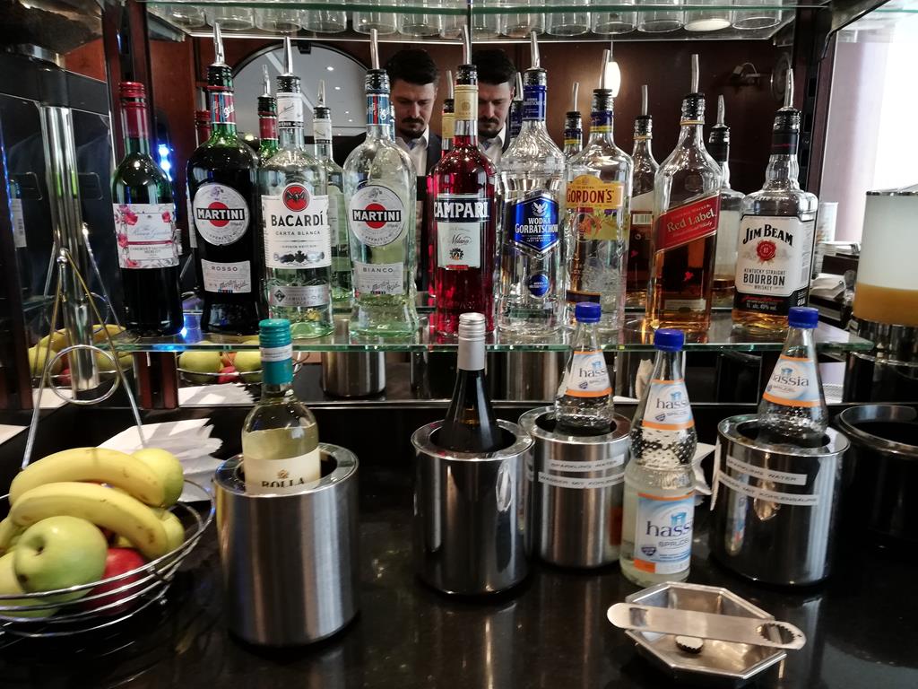Die Kaffeemaschine war in Ordnung. Die Auswahl an Weinen und Spirituosen war zwar nicht hochwertig, aber es gab eine vernünftige Auswahl.