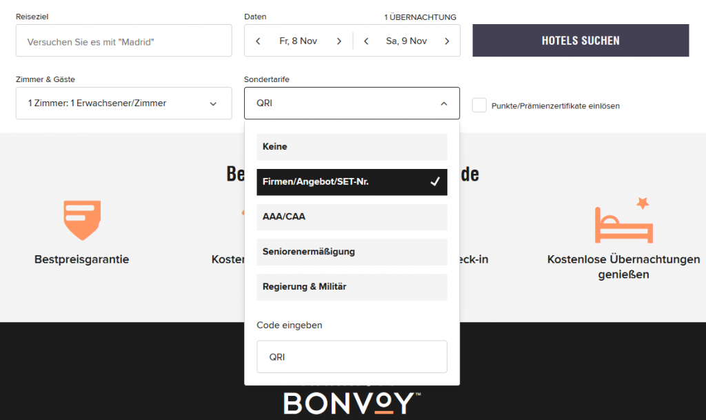 Der einfachste Weg, Marriott Bonvoy Escapes zu buchen ist über die normale Homepage von Marriott. Dort hinterlegt ihr den Ratencode „QRI“ und sucht nach verfügbaren Hotels. Wollt ihr das möglichst schnell gestalten, sucht einfach nach ganzen Ländern bzw. Bundesstaaten (z.B. in den USA). Auf der Ergebnisseite könnt ihr dann anklicken, nur verfügbare Hotels anzuzeigen. Et voilà, habt ihr die Auswahl kompakt dargestellt.