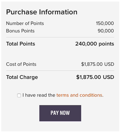 - Normalerweise dürfen maximal 50.000 Punkte im Kalenderjahr gekauft werden. Im Rahmen der Promo steigt die Grenze jedoch auf 150.000 Punkte, welche man in einer Transaktion kaufen darf. Zusammen mit den Gratispunkten kann man während der Aktion 240.000 Punkte je Account kaufen.