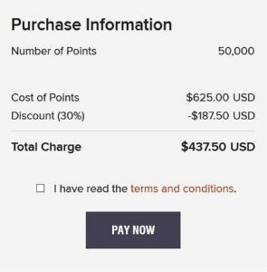 • Normalerweise dürfen maximal 50.000 Punkte im Kalenderjahr gekauft werden. Im Rahmen der Promo steigt die Grenze jedoch auf 100.000 Punkte, d.h. dass man zweimal bis zu 50.000 Punkte kaufen darf. In einer Transaktion ist der Kauf von 100.000 Punkten nicht möglich.