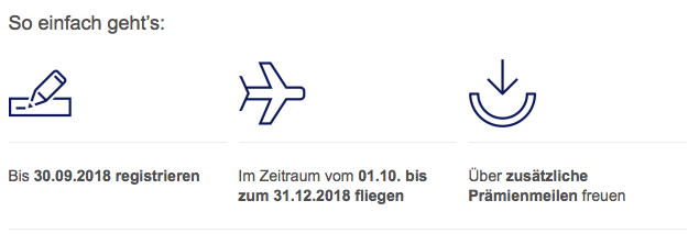 Man muss in dieser Zeit zwischen dem 01.10.2018 und dem 31.12.2018 auch seinne Flug buchen.Und erst dann kann man diese Prämie auch bekommen.