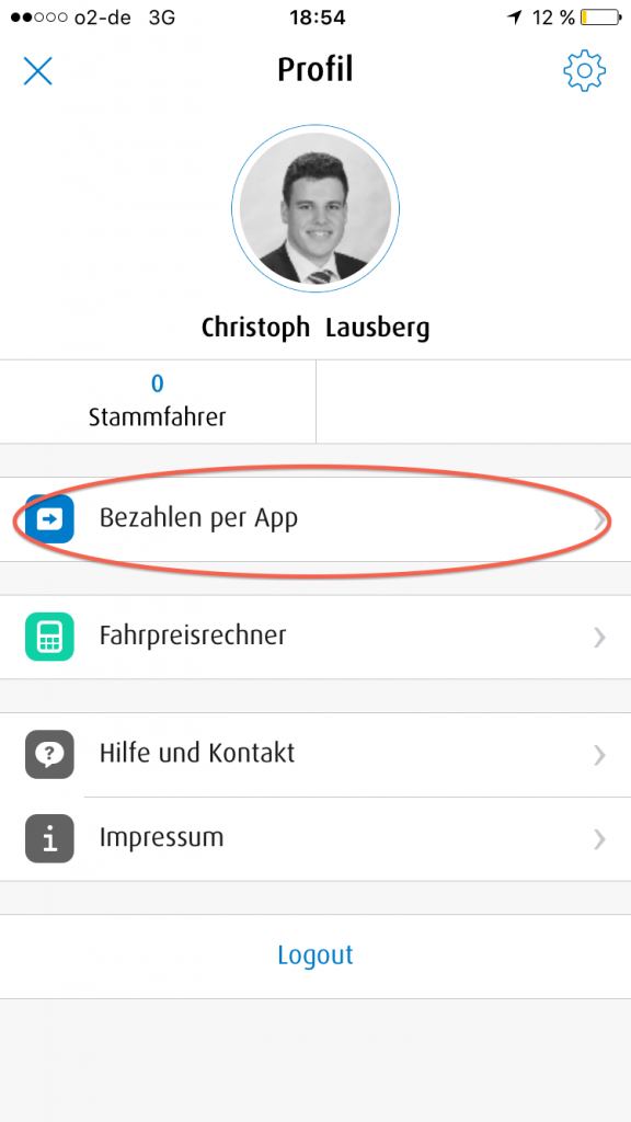 Wenn Ihr die mytaxi App öffnet, klickt ihr oben rechts auf das Profilbild.