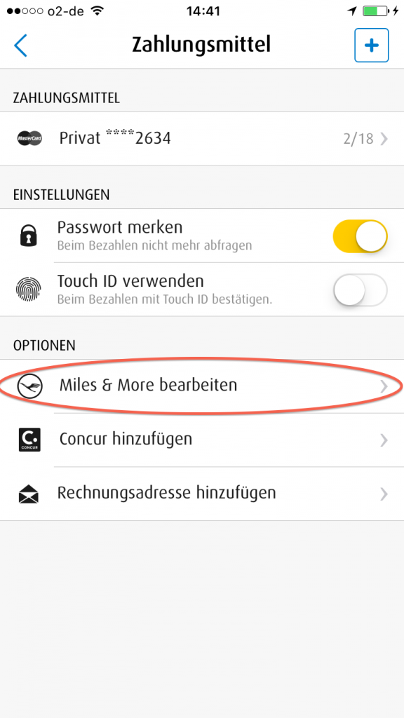 Und dort auf Miles & More Nummer bearbeiten. Hier könnt Ihr einfach Eure Miles and More Nummer eintragen und erhaltet anschließend für jede Fahrt Prämienmeilen.