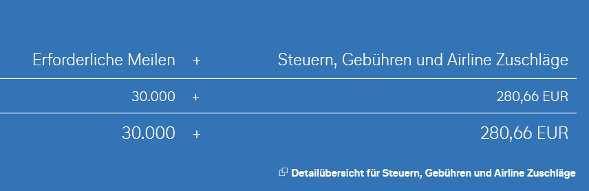 Das bedeutet, dass man effektiv 30.000 Meilen einsetzt, um 250 Euro zu sparen.
