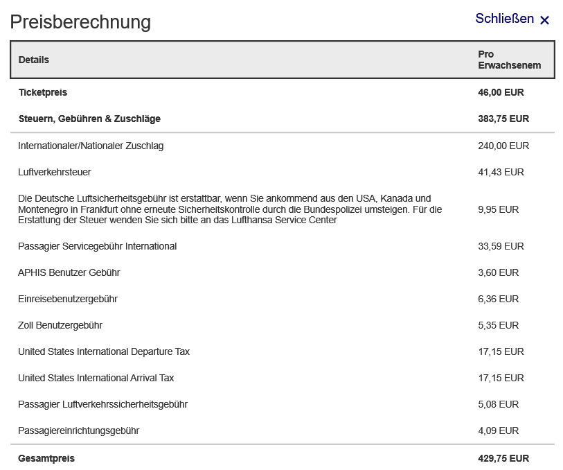 Warum Lufthansa den internationalen Zuschlag nicht ganz um 50% reduziert, wird wohl für immer deren Geheimnis bleiben.