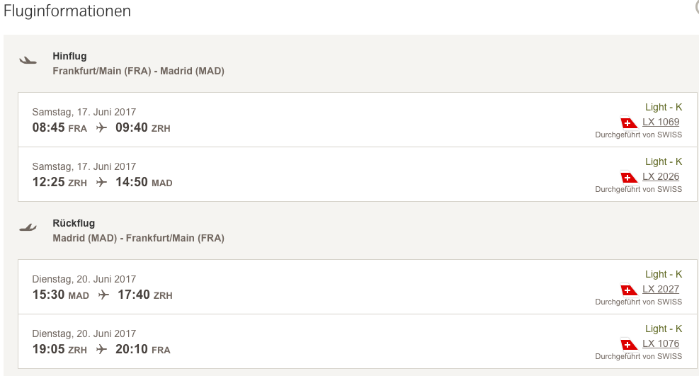Ein Flug von Frankfurt nach Zürich in der Buchungsklasse L: