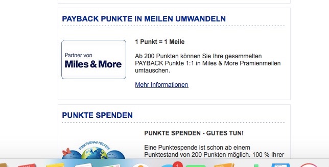 Es gibt auch immer wieder tolle Angebote um für sehr schmales Geld eine sehr beachtliche Anzahl von Payback Punkten und damit Miles&More Meilen zu generieren. Daher ist Payback für den Miles&More Meilensammler fast unerlässlich.