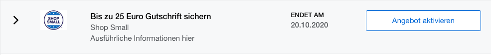 Wichtig ist, dass Ihr Euch für die AMEX Offer in Eurem Online Kartenkonto oder der AMEX APP registriert. Anschließend müsst Ihr die AMEX Kreditkarte nur bis zum 20. Oktober bei einem Shop Small Partner einsetzen. Die Gutschrift kommt automatisch auf das Kartenkonto.