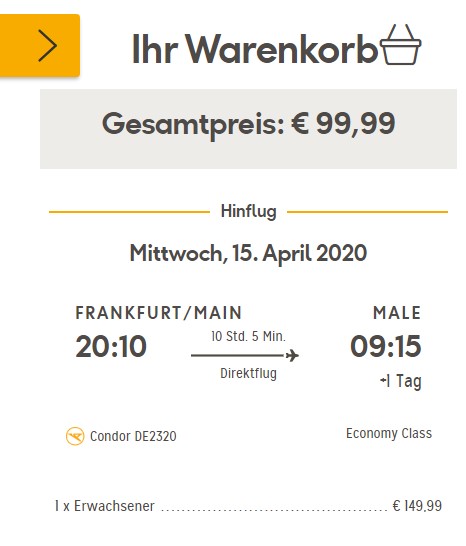 Wie gewohnt bei Condor eine tolle Gutschein-Aktion ohne Haken. Hier bekommt Ihr faire 20 Euro oder 50 Euro Reduzierung auf den Flugpreis. Mit den Gutscheinen sind zum Beispiel Flüge auf die Malediven schon für 99 Euro buchbar.