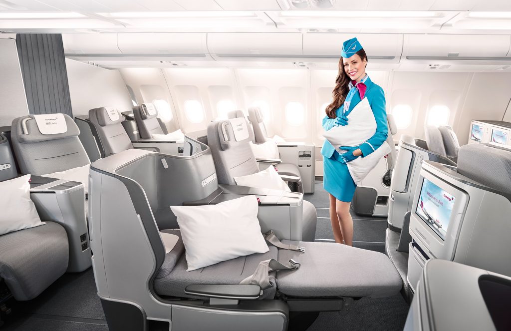- Zunächst sollte Eurowings mit einer Economy-Konfiguration fliegen (inkl. Premium Economy). Später kam dann doch eine Business Class hinzu.