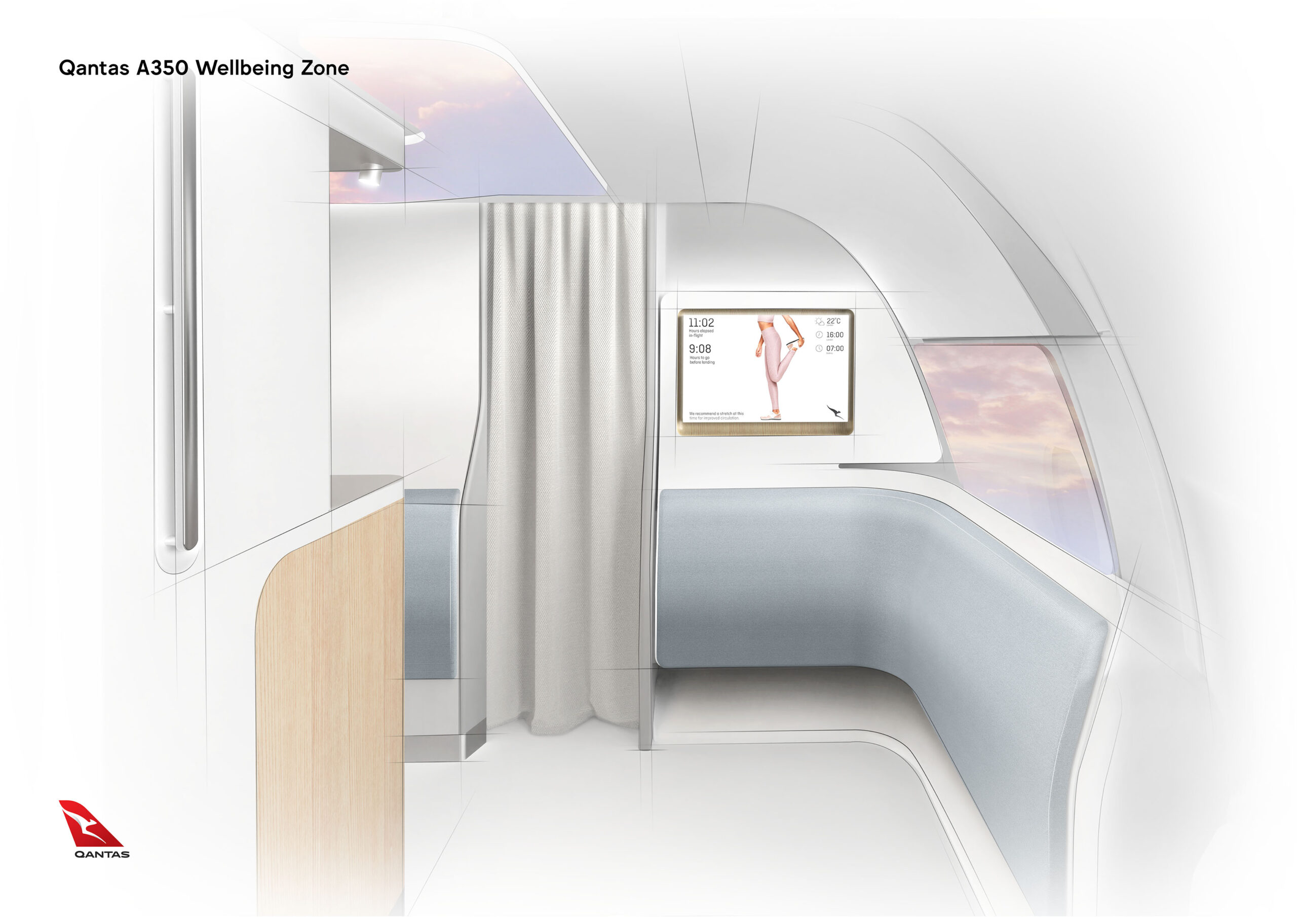 Spielereien, wie das angefachte Fitnessstudio oder Betten im Frachtraum für die Economy Class wird es nicht geben, lediglich eine Wellbeing Zone wird es im Airbus A350-1000 geben, in welcher sich die Passagiere der Economy Class und Premium Economy Class die Beine vertreten können.