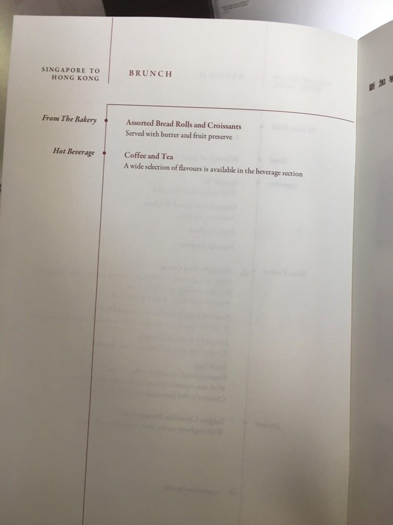 Singapore Airlines beschreibt das Menü als Brunch, was bei der Abflugszeit am Vormittag auch passend ist.