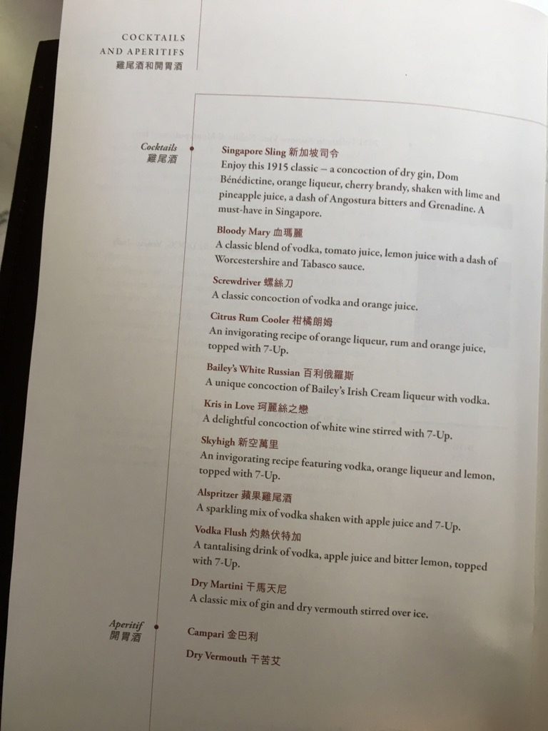 Kurz vor dem Landeanflug auf Hongkong habe ich mir dann noch meinen traditionellen Singapore Sling bestellt, denn was ist ein Flug mit Singapore Airlines, ohne Singapore Sling?