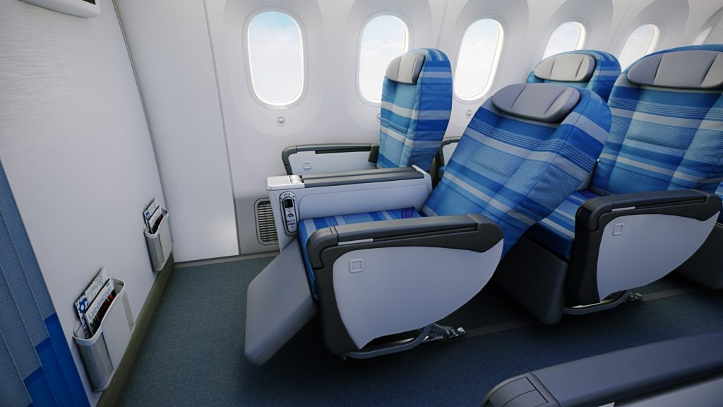 In der Premium Economy Class sind bequeme Sessel in einer 2-3-2 Bestuhlung verbaut. In der Boeing 787-9 haben diese einen Sitzabstand on 42 inch (106cm), was 4inch mehr sind, als in der 787-8. Hiermit bietet man eine der großzügigsten Premium Economy Class Sitze auf dem Markt.