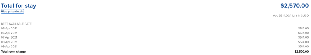Ein Aufenthalt von 5 Nächten kostet in dem Beispiel 2.570$. HHonors Mitglieder (ab Silberstatus) können 5 Prämiennächte buchen und müssen nur 4 bezahlen. Dies wären also 320.000 Punkte, die es derzeit für 1.600$ gibt. Ein Unterschied von 1.000$. Man kann pro Konto zwar nur 160.000 Punkte kaufen, allerdings lassen sich zwei Konten auch zusammenlegen.