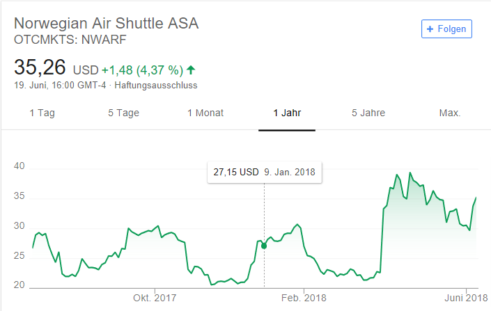 Es ist durchaus denkbar, dass all diese Aussagen dazu dienen sollen, den Aktienkurs von Norwegian zu steigern und so einen höheren Verkaufspreis zu erzielen. Kjos könnte sich so seine Anteile an der defizitären Airline durchaus vergolden. Seit der Übernahmegerüchte, ist der Aktienkurs zumindest deutlich gestiegen, wenn auch nicht in schwindelerregende Höhe.