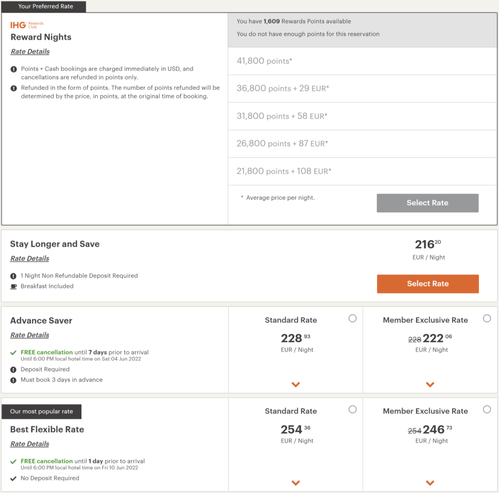 Der IHG Punktekauf kann sich so richtig lohnen. Vor allem, wenn Ihr bereits konkrete Reisepläne habt. Dann könnt Ihr vorab prüfen, was eine Cash-Buchung kosten würde und ob es sich lohnt stattdessen mit Punkten zu buchen.