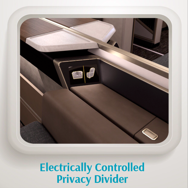 In der Business Class der Boeing 787 ist bisher die Apex Suite verbaut. Obwohl es eigentlich eine 2-2-2 Konfiguration ist, haben alle Plätze direkten Zugang zur Mittelgang. Einen Review findet Ihr übrigens bei GlobalTraveler.tv.