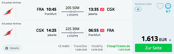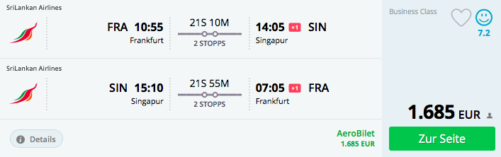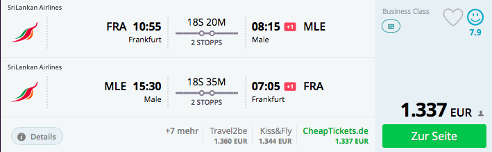 Die One World Airline Sri Lankan bietet momentan sehr günstige Business Class Flüge auf die Malediven und nach Südostasien an. Dabei starten die Flüge direkt ab Frankfurt zu einem sensationell günstigen Preis.