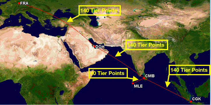 Für den Silber Status (oneworld Saphire Status) müsst Ihr 600 Tier Points einfliegen. Diese lassen sich mit diesem Angebot komplett sammeln. So sammelt Ihr bei Flügen auf die Malediven, Singapur, Bangkok oder Kuala Lumpur bereits insgesamt 640 Tier Points. Nach Jakarta sammelt Ihr sogar 840 Tier Points, da hier alle Flüge länger als 2.000 Meilen sind.