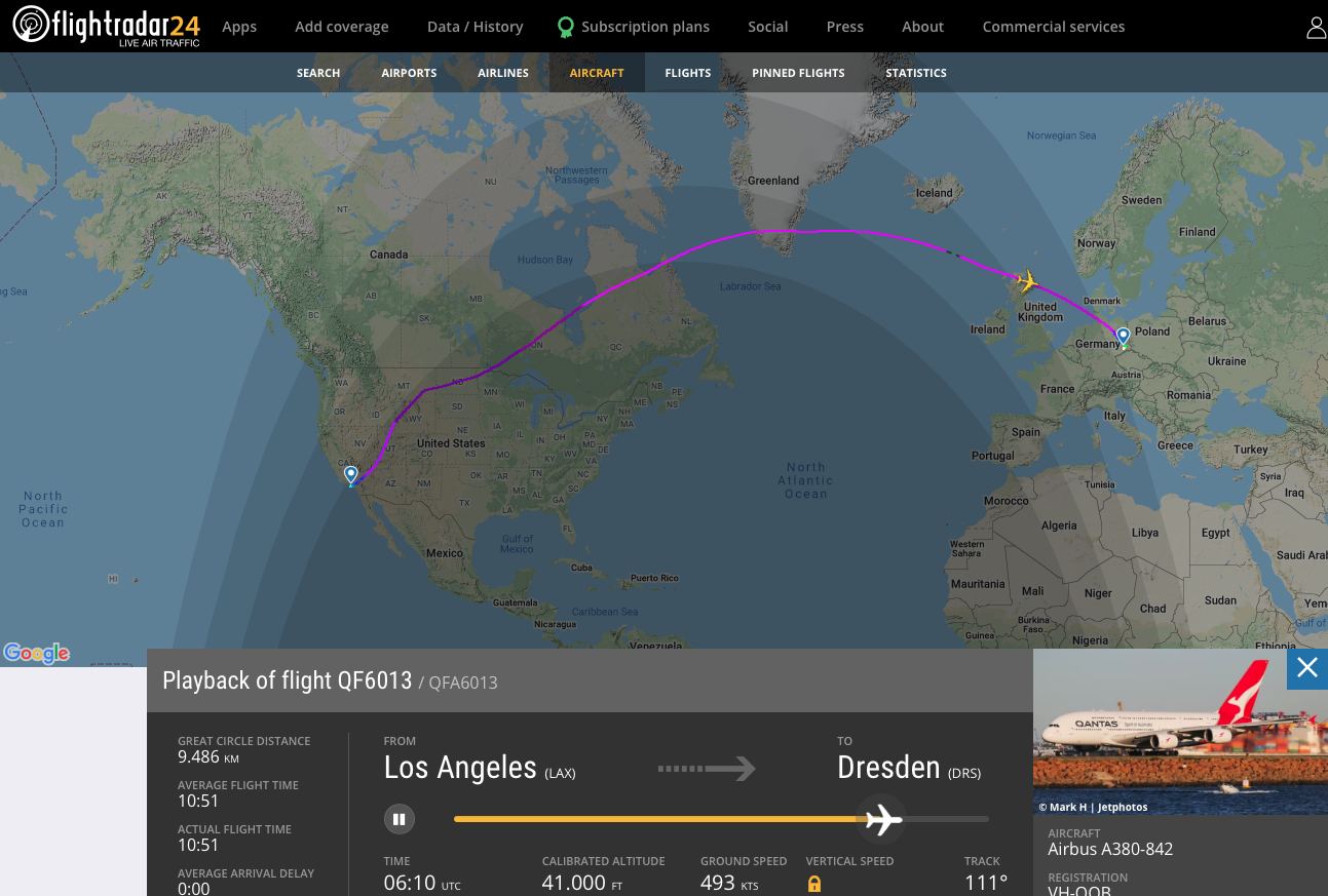 Während der Airbus A380 und besonders der Qantas Airbus A380 in Los Angeles ein häufiger Gast war, gehört Dresden sicherlich nicht zu den Drehkreuzen, an welchen man dieses riesige Flugzeug auf einem Transatlantik Flug erwartet, aber Qantas flog gerade einen Airbus A380 in knapp 11 Stunden von Los Angeles nach Dresden