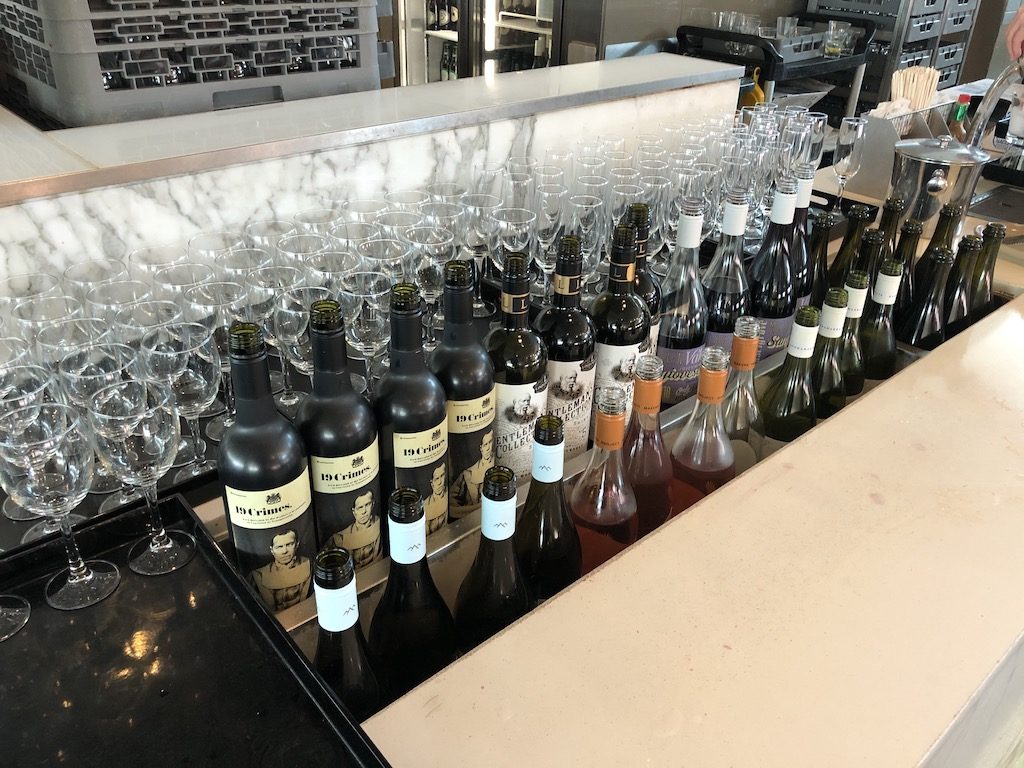 Die Qantas Business Class Lounge ist am Drehkreuz in Sydney zwar gut besucht, hat aber gigantische Kapazitäten. Es gibt zahlreiche Sitzmöglichkeiten wie z.B. Sessel, Barhocker oder Tische die zum Arbeiten, Entspannen oder Essen einladen. Eine riesige Bar bietet 5 verschiedene Weine aus der Region und zahlreiche Cocktails.