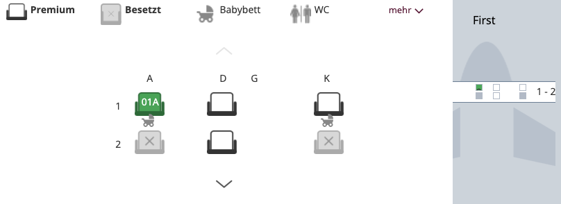 Dieses Vorhaben kann sich natürlich jederzeit und auch sehr kurzfristig ändern, für die Planungen ist es jedoch wichtig dass man sich festlegt. Die Flugzeuge weichen bei der Konfiguration etwas ab, daher kann ein Wechsel der Maschinen schnell zu Nachteilen bei der Operation führen. Bei der Buchung und bei der Sitzplatzauswahl kann man also bereits die Konfiguration der mit 296 Plätzen bestuhlten Flugzeuge erkennen. Insbesondere die First Class fällt mit dem großzügigen Platzangebot und der 1-1-1 Bestuhlung auf.