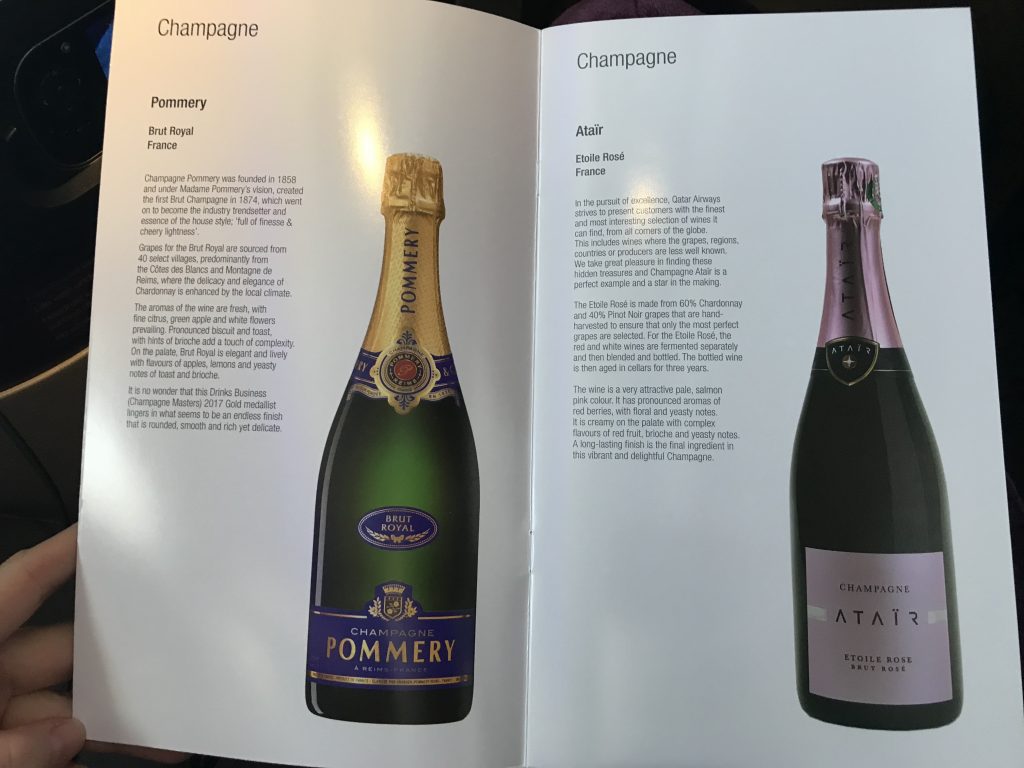Nachdem ich Platz genommen habe stellten sich bei mir zwei Flugbegleiterinnen vor und fragten nach einem ersten Getränkewunsch. Zum Willkommensdrink wurde auf Wunsch ein kaltes oder warmes Tuch gereicht. Zudem wurde mir angeboten den Sitz zu erklären, was ich höflich ablehnte, da wir schonmal in der QSuite unterwegs waren.