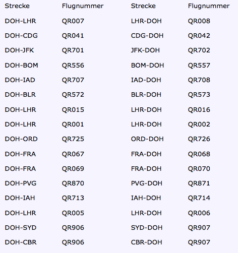 QR713/ QR 714 zwischen Doha und Houston wird beispielsweise vorerst nur jeden zweiten Tag mit der QSuite bedient. Dennoch wird der Zuschlag auf allen Flügen erhoben, auch wenn eine Boeing 777-200LR mit alter 2-2-2er Business Class zum Einsatz kommt, da der Zuschlag an die Flugnummer gekoppelt ist.