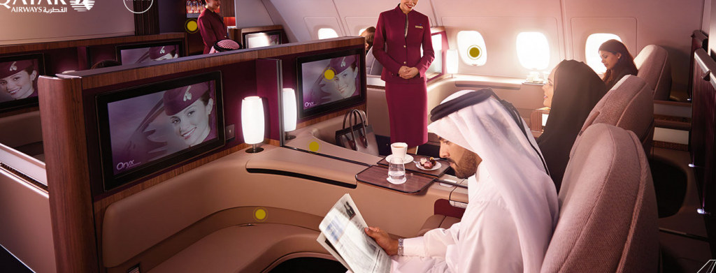 Kurze Nahost-Strecken von und nach Doha wurden als „First Class“ vermarktet, auch wenn sie in der Business Class der B777 oder des A320 geflogen wurden. Damit erhielten zahlungskräftige Kunden auf Strecken wie nach Kuwait oder Amman Zugang zur „Al Safwa First Class Lounge“ am Hub der Airline.