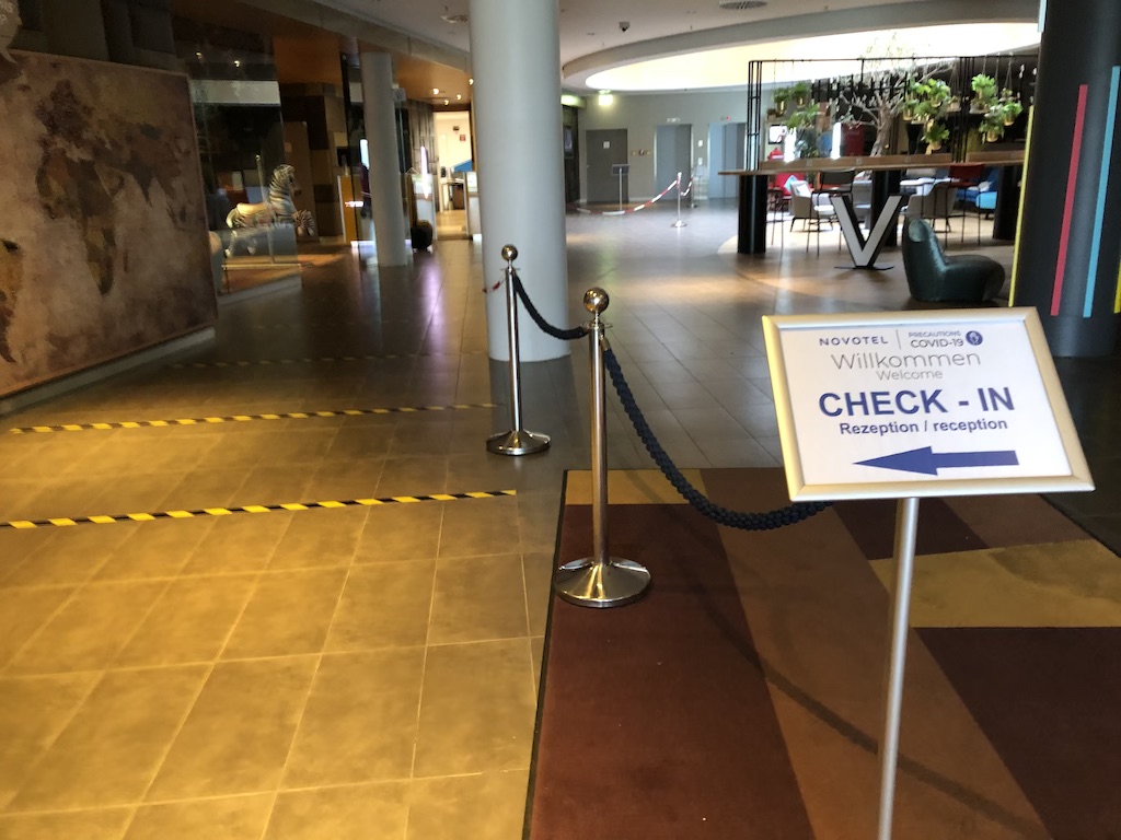 Das Reiseaufkommen befindet sich noch immer auf dem Tiefstand, es geht nur langsam wieder bergauf. Viele Hotels haben geschlossen, andere sind unter Auflagen eingeschränkt geöffnet. Das Novotel Munich Airport gehört dazu, es ist geöffnet und über die gewohnten Kanäle buchbar. Auf insgesamt vier Etagen verteilen sich mehrere Hundert Zimmer, aktuell wird nur die erste Etage genutzt und belegt. Es gibt Plexiglasscheiben, Desinfektionsmittel, wie in Supermärkten gelten Abstandsregeln und Maskenpflicht. Weitere Einschränkungen: