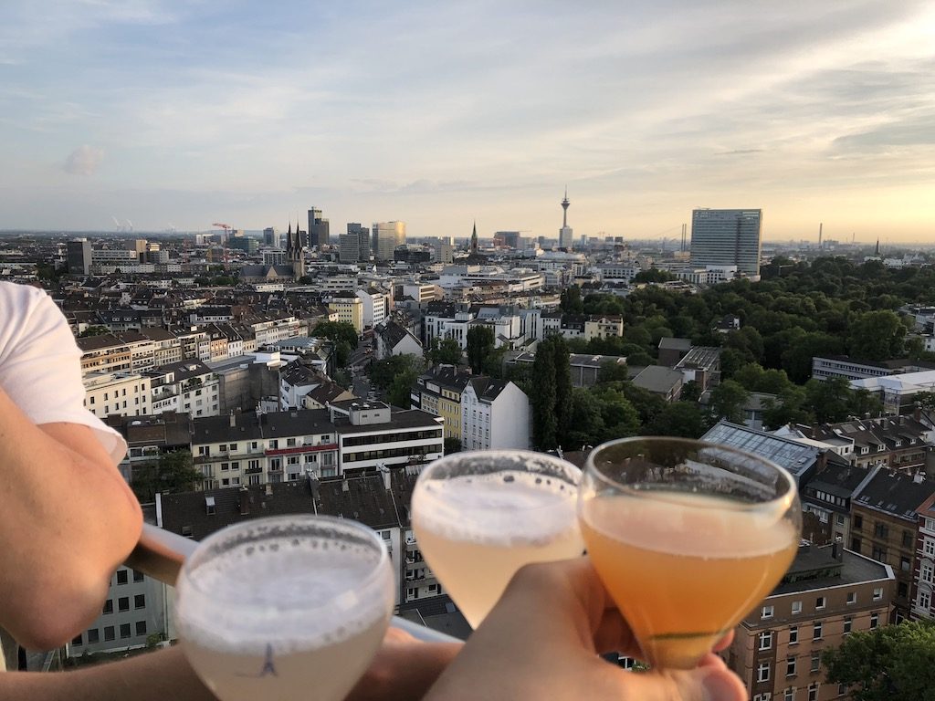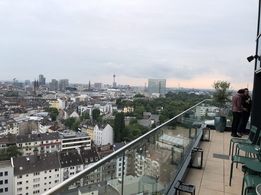 In der Bar werden zu durchaus fairen Preisen viele Arten von Cocktails, Longdrinks, verschiedenen Weinsorten sowie eine französische Biersorte angeboten. Zusätzlich sind kleine Snacks erhältlich. Besonders die Außenterrasse, die abends durchaus sehr voll werden kann, stellt hier eine atemberaubende Location über den Dächern Düsseldorfs dar.