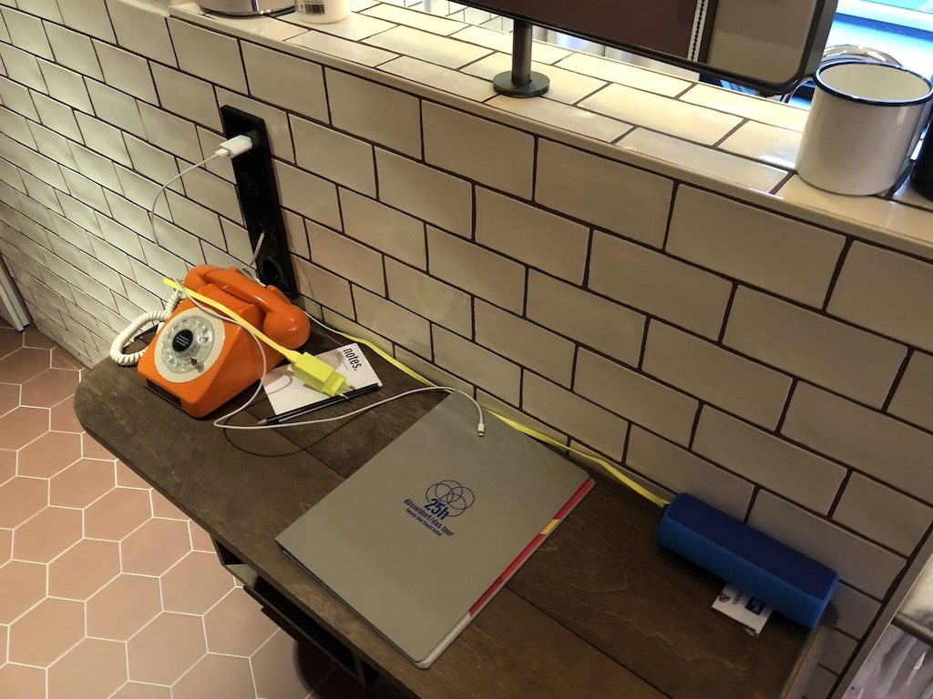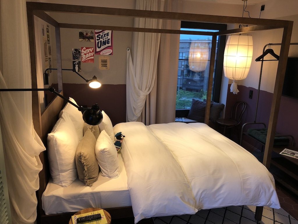 Das Zimmer war, wie das gesamte Hotel, sehr hipp orientiert eingerichtet, was sich durch viele Poster mit lässigen Sprüchen in französischer Sprache und auch ein stylisches Telefon zeigte.