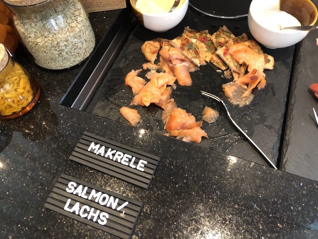 Wie bereits erwähnt, wird das Frühstück im Restaurant im zweithöchsten Geschoss des Hotels serviert. Dieses hatte eine wirklich große Auswahl an verschiedensten Lebensmitteln. Hierbei war deutlich eine hohe Qualität dieser erkennbar. Unter anderem konnte man zwischen Makrele, Lachs und verschiedenen Käsesorten auswählen. Auch französische Brotaufstriche und diverse Honigsorten gehörten zum Angebot.
